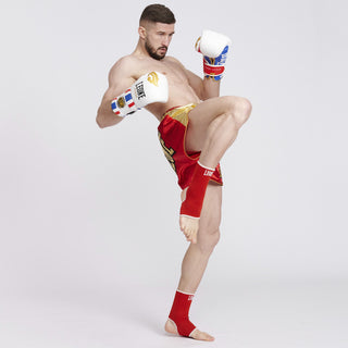 Le Cavigliere Leone 1947 Double Face AB716 si distinguono per la doppia colorazione. Ideali da indossare per incontri e competizioni di sport da combattimento. Realizzate in cotone elasticizzato reversibile, sono disponibili nelle colorazioni: rosso-blu, nero-bianco, verde-arancio. Perfette per offrire supporto alle caviglie e protezione da lesioni e abrasioni.