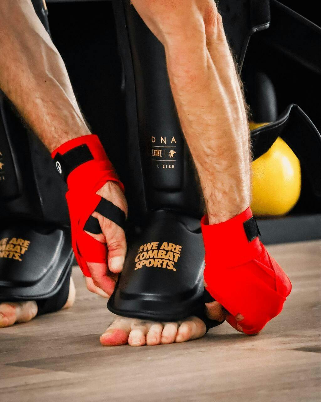 I Paratibia Leone DNA PT177 sono delle protezioni progettate per allenamenti di Kick boxing, Muay Thai, MMA. Grazie al design anatomico, avvolgono efficacemente le fasce muscolari delle gambe e le tibie. Il sistema di chiusura è fornato da velcro e bande elastiche, in modo da offrire stabilità e vestibilità ferma. Nella zona della tibia è presente un'imbottitura aggiuntiva pensata per offrire maggiore assorbimento dei colpi. Neri con dettagli oro, i Paratibia Leone DNA hanno un look elegante e prezioso.